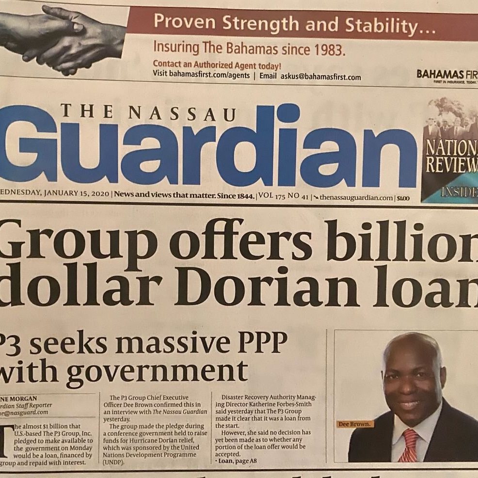 THE P3 GROUP AMONG TITLE SPONSORS OF THE UNITED NATIONS DEVELOPMENT PROGRAM’S “BAHAMAS HURRICANE DORIAN PLEDGE CONFERENCE.” DURING THE CONFERENCE THE P3 GROUP PROPOSED A MASSIVE $1 BILLION PUBLIC PRIVATE PARTNERSHIP WITH THE BAHAMIAN GOVERNMENT.